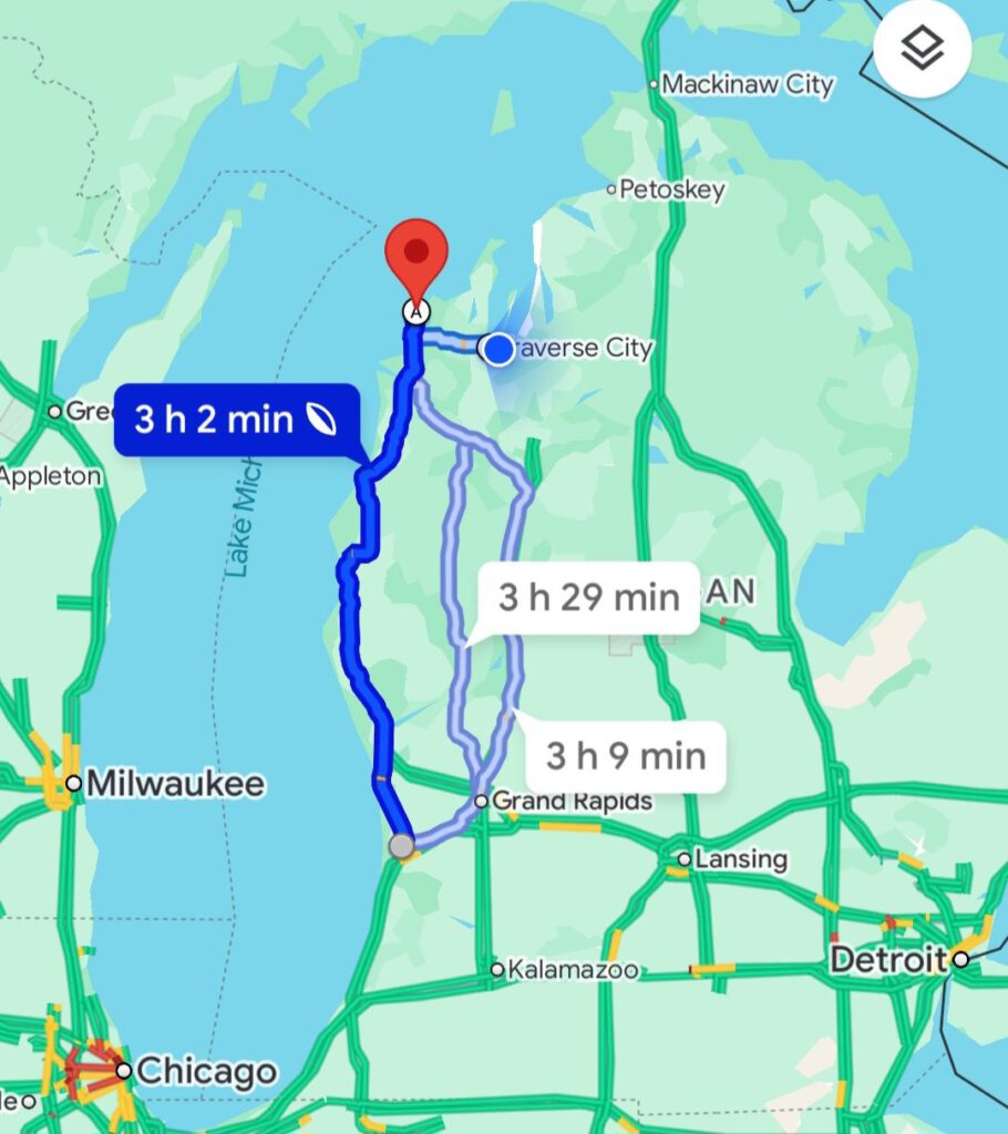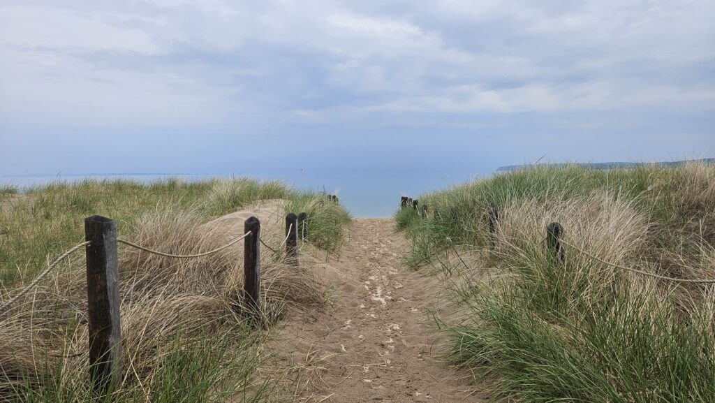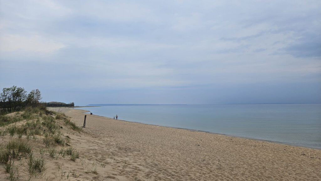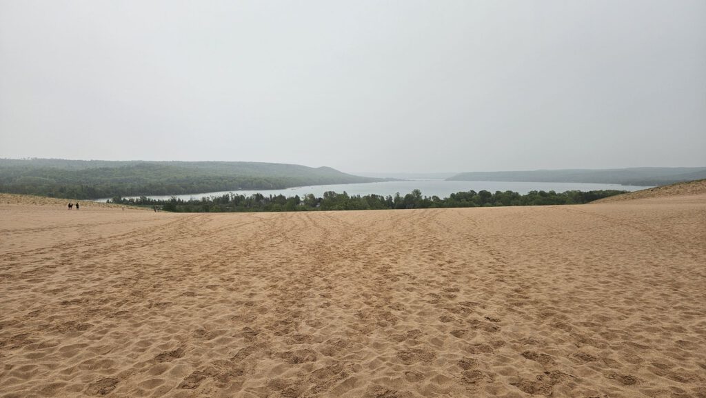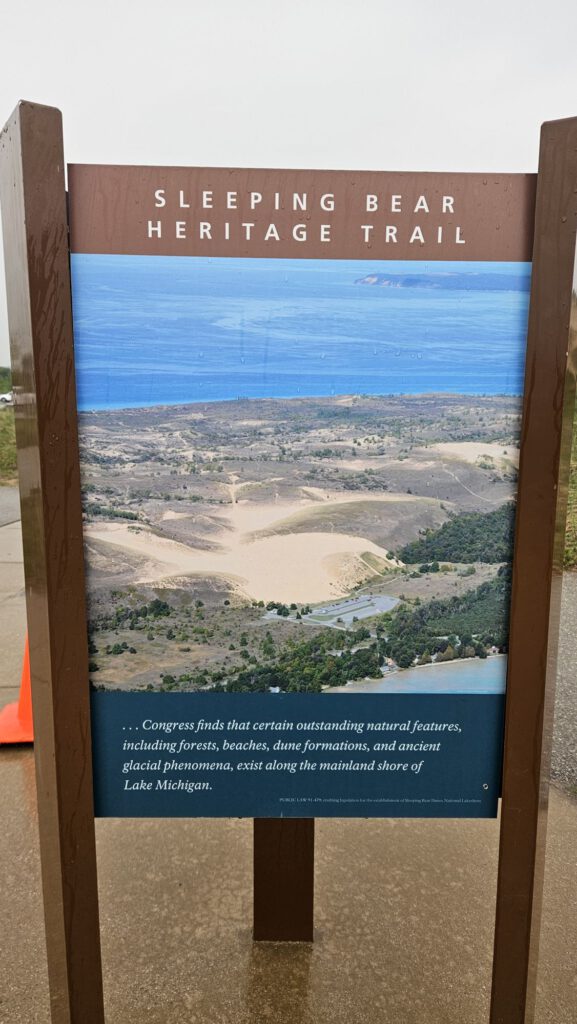 Auf dem Weg nach Traverse City an dem Sleeping Bear Dunes einen Stopp eingelegt. Leider war das Wetter nicht ganz so gut. Route von Holland über Sleeping Bear nach Traverse City Dune Climb Von Oben Blickrichtung Glen Lake Sleeping Bear Heritage Trail Glen Haven Beach Glen Haven Beach Glen Haven