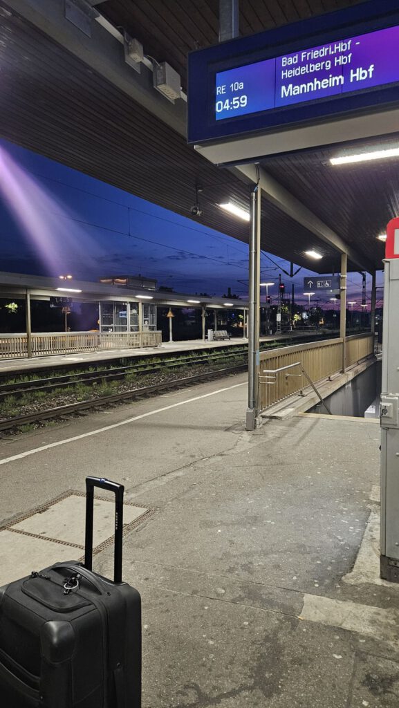 Die Reise beginnt. Mit der Bahn nach Mannheim und weiter nach Frankfurt-Flughafen. Jetzt einchecken und warten…